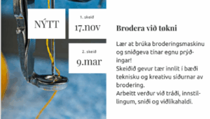 Lær at brúka broderingsmaskinu og sniðgeva tínar egnu prýðingar!